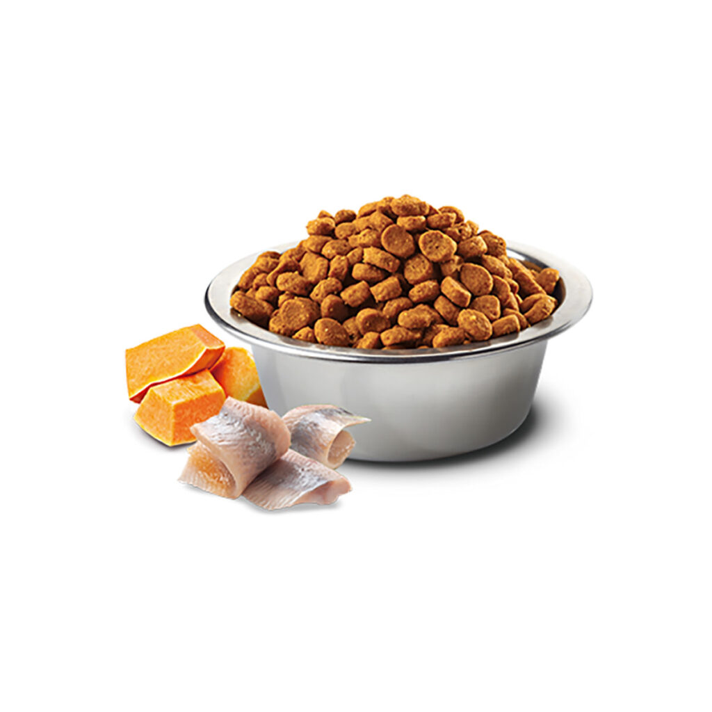 Hrana za odrasle mačke s svežim sledom, bučo in pomarančo. Sled je bogat z beljakovinami in selenom, ki prispeva k ohranjanju zdravega kožuščka. Buča poskrbi za vnos vlaknin, ki so nujne za zdravje črevesja, pomaranča pa z visoko vsebnostjo kalija zmanjšujejo tveganje za nastanek in razvoj bolezni.