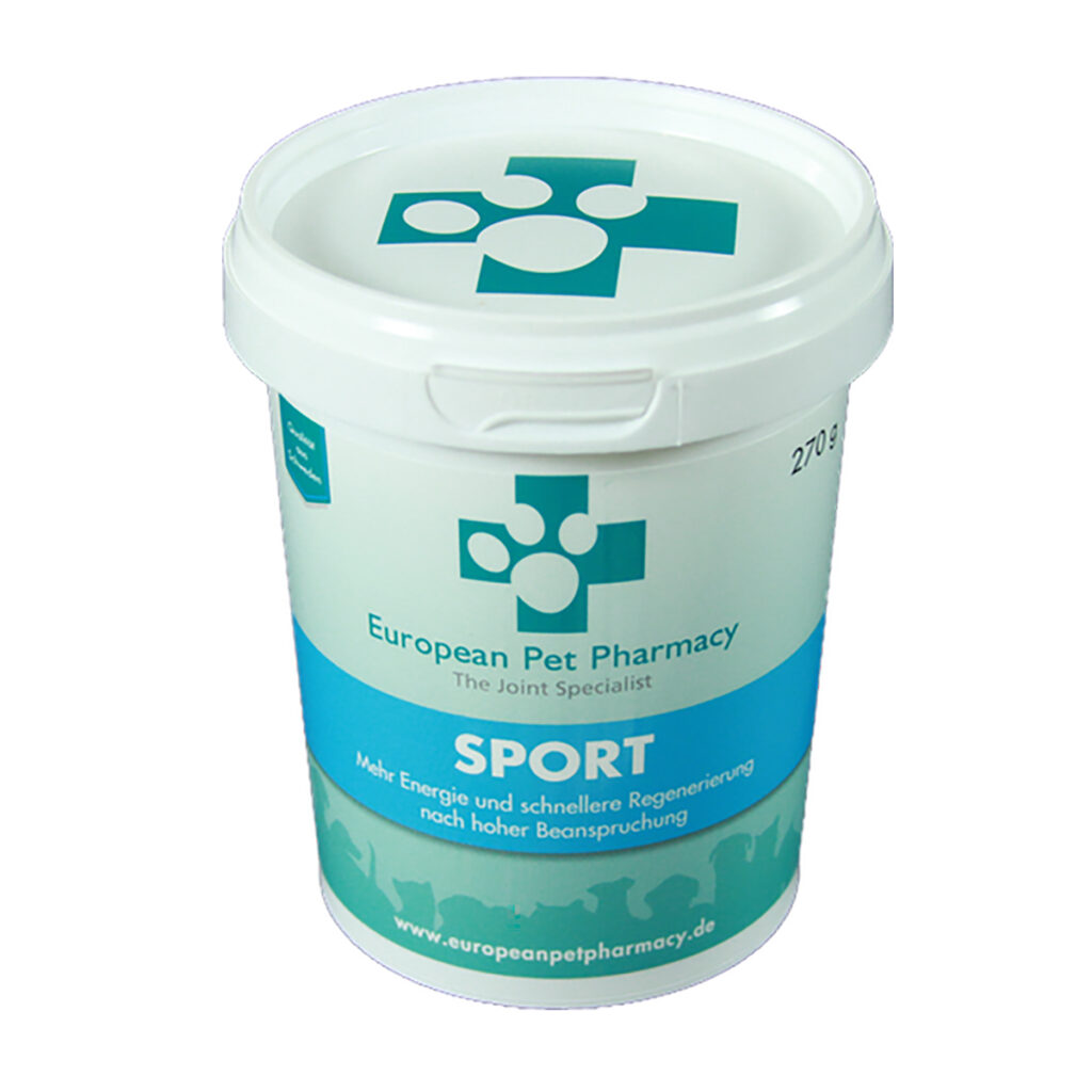 European Pet Pharmacy Sport je prehransko dopolnilo namenjeno aktivnim psom izpostavljenim večjim fizičnim naporom. Vsebuje posebno mešanico MSM, vitamina C in aminokislin, ki pomaga k hitrejši regeneraciji po naporih in aktivnostih ter pripomore tudi k lažjemu ohranjanju mišične mase.